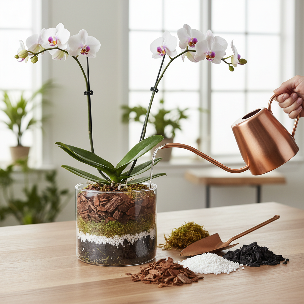 Õige tasakaal õhu ja vee vahel on orhidee tervise seisukohalt ülioluline. Liiga tihe mullasegu hoiab niiskust kinni ja põhjustab juuremätas, samas kui liiga õhuline segu võib lasta substraadil liiga kiiresti kuivada. Selle vältimiseks:
