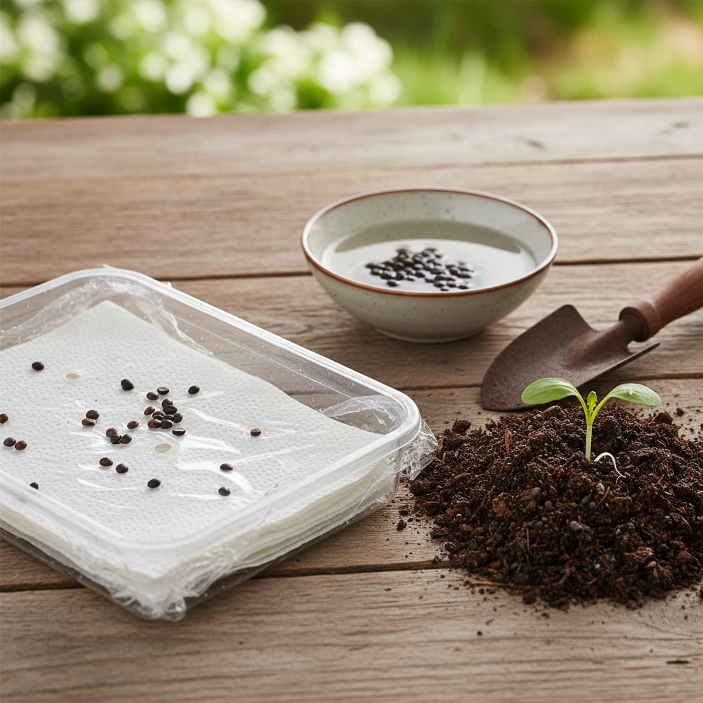 - Niiskel paberil idandamine: Võta madal plastkarp või tavaline taldrik, aseta selle põhjale kolm-neli kihti majapidamispaberit ja niisuta see korralikult läbi. Vesi ei tohiks karbis ujuda, kuid paber peab olema üleni märg. Laota leotatud seemned ühtlaselt paberile, vältides nende suurtesse kuhjadesse sattumist.